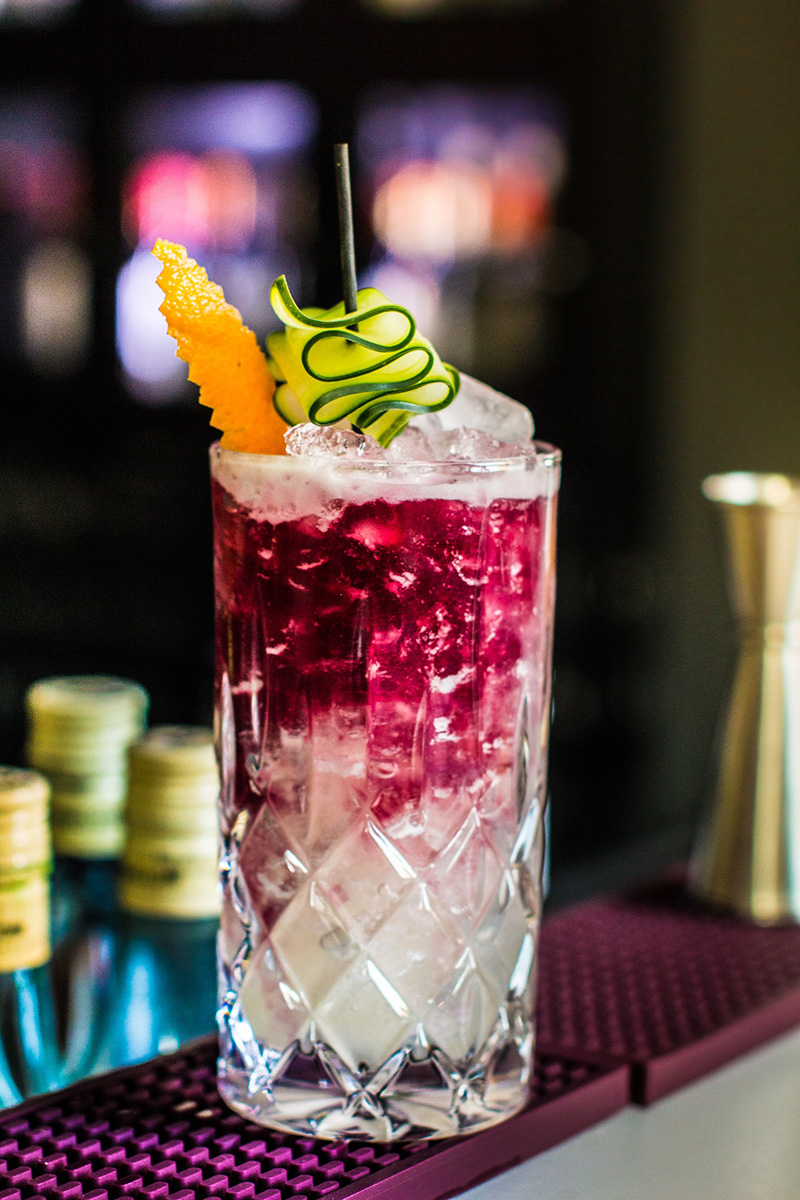Todos los ingredientes directo al vaso, rellenar con +maqui light. Decorar con slice de pepino y piel de naranja.
