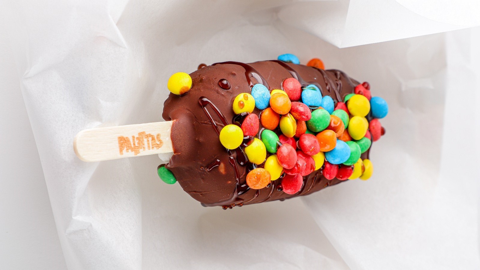 un barquillo crujiente relleno con helado artesanal y bañado en chocolate. Dulce de leche, chocolate avellana o frambuesa al agua son las opciones para degustar de esta delicia reconfortante, que combina la nostalgia de los sabores tradicionales con la calidad y creatividad que caracterizan a Palettas.