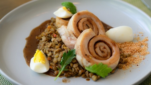 malaya, cocinado a baja temperatura con guiso de lentejas y cerramos con su deliciosa