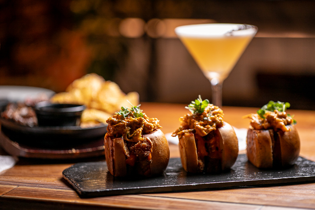 El Navegante, con Havana Club 3 años, St-Germain, té Earl Grey y un toque sutil de limón; y Crimson Sunset, que mezcla bourbon, carmenere, Aperol, pimiento dram, limón y Thomas Henry Pink Grapefruit. Ambos, más equilibrados y delicados, funcionan como un puente armónico entre barra y cocina.