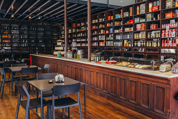 En la primera planta se desarrolla el emporio, con una oferta a granel que va creciendo, aceite de oliva, café de la casa, próximamente vino país, quesos, fermentados y conservas. El espacio quiere apoyar a los productores pequeños de la zona, y están haciendo todas las gestiones para conseguirlo. Como ya se puede percibir, la apuesta del Emporio va más allá de la oferta gastronómica, sino que viene más bien a reactivar un pilar del funcionamiento de la comunidad porteña. Al igual que en proyectos anteriores, se abren espacios que se encontraban en el olvido.