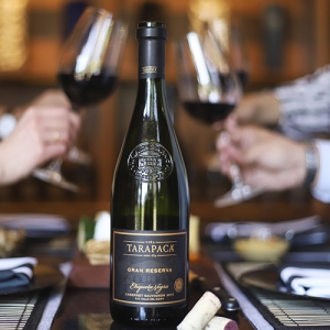 De un tono rojo rubí intenso y que en nariz expresa la esencia de su origen del fundo El Rosario, desplegando notas de frutas negras, como grosella y cassis, Tarapacá, Gran Reserva Etiqueta Negra Cabernet Sauvignon 2017, que tiene su origen en el Valle del Maipo...