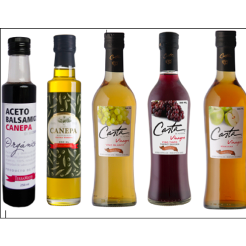 Por su parte, destaca su variada línea de vinagres Casta, 100% natural, de sidra de manzana, de vino cabernet y de vino Chardonnay; obtenidos a través de la fermentación del vino, proceso en el cual se transforma el alcohol en ácido acético obteniendo un aderezo de máxima calidad y concentración. Gracias a su gran acidez, tiene altas propiedades antisépticas, lo que lo convierte en un excelente conservante natural.