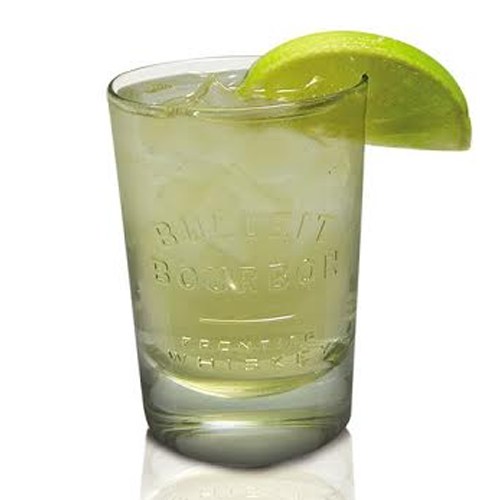 Agregar en un vaso hielo, bulleit y soda. Con un cuchillo afilado, cortar una rodaja de limón sobre una tabla de picar y colocarla sobre el vaso para decorar.