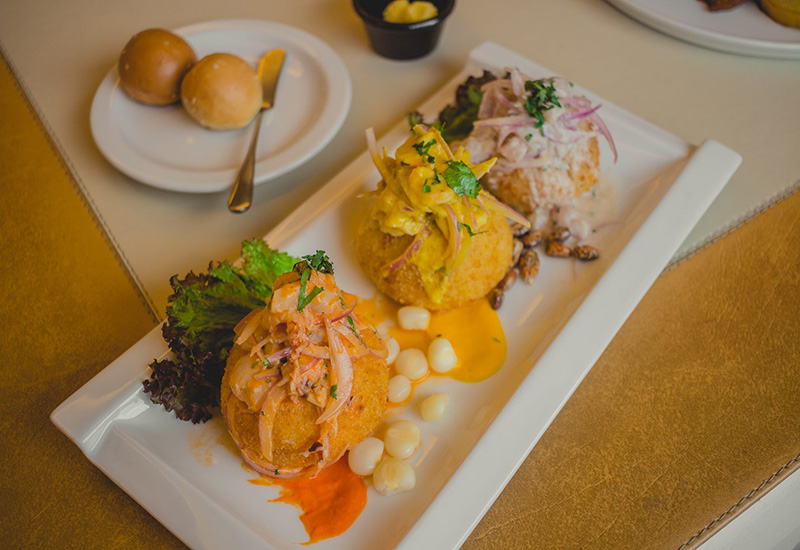 Casa Valerio nos presenta una trilogía de Ceviche frito en “majao de yuca” frita en panco, con versiones de Ceviche tradicional con leche de tigre y pescado del día; otro relleno de camarón en salsa de ají amarillo y uno mixto, con ostiones crudos, pulpo y calamares, en una salsa acevichada con rocoto y pimentón. También destaca el Ceviche mixto sobre Piña, donde el pescado blanco y los mariscos descansan junto a la cebolla morada laminada finamente, sobre una sabrosa salsa de rocoto y pimentón.