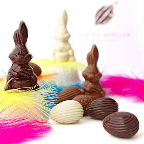 Cada producto se encuentra en chocolate de leche y semiamargo y, también, pueden encontrarse encantadores conejos libres de azúcar.