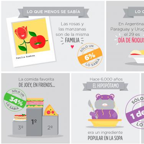 Chile sabe de gastronomía, y tuvo un alto porcentaje de respuestas acertadas cuando se preguntaba, por conceptos como qué es el arroz con leche (90%) o cómo se prepara el carpaccio (76%). También tuvieron un buen resultado de aciertos para adivinar qué es lo que le da el toque picante a una salsa (85%), o lo que contiene un arrolladito de primavera (84%). La pregunta mejor contestada fue ‘¿Qué es la chicha?’, con un 97% de acierto.