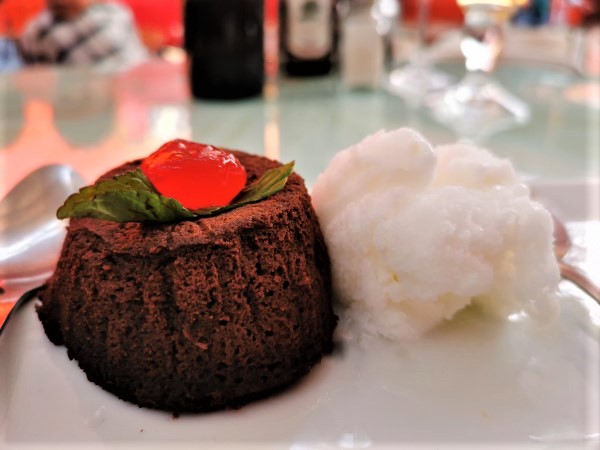 Buscando el cierre del atracón. Nos deleitamos con dos tiernos volcanes de chocolate y una porción de helado artesanal de limón. Sin duda una buena remembranza de la creación del chef Bras para dar justo cierre junto a un café express y un buen ron en las rocas para recuperar espíritu, celebrar la buena onda y retornar camino. Los Pinos un lugar que se encuentra buen comer y buen beber en un mismo lugar.
