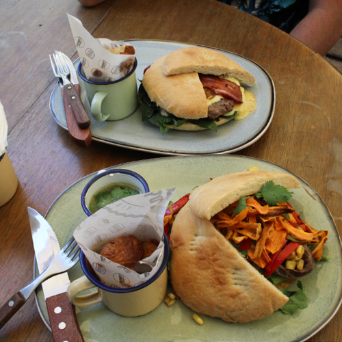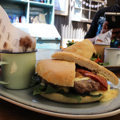La carta de Casa Combi te tienta de principio a fin. Llena de Fricandelas Caseras, Churrascos, Mechadas y cosas dulces. Pregúntenle a Álvaro o a Cristián Vargas, su cocinero, por la anécdota que da nombre a su sánguche de lengua “La Copuchenta”. Además le lleva paltita, salsa verde y mayo casera. Para conocer las delicias de Casa Combi, nos fuimos directamente por las sugerencias de Álvaro. Probamos “La Pituca”, una hamburguesa sobre un colchón de espinacas, bañada en salsa de queso azul, cubierta de cebolla caramelizada y chips de tocino. ¿La están imaginando? ¡Es una delicia! Es suave al paladar pero recibe un golpe de energía con el sabor del queso azul. Tienen que probarla. Fue mi preferida (de ese día).