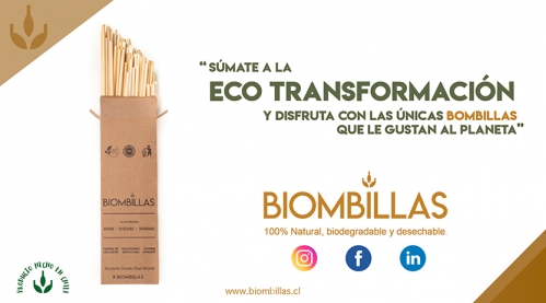 BIOMBILLAS - BOMBILLAS BIODEGRADABLES - Nacemos con el propósito de desarrollar una alternativa sustentable para las bombillas plásticas u otras artificiales. Elaboramos, desde el Valle de Colchagua, una línea de bombillas 100% naturales a partir de materias primas derivadas de cereales que son capaces de resistir, sin deformarse ni deshacerse, largas permanencias en líquidos calientes y fríos, las que luego de usarlas puedes compostarla y así volver a la tierra, o desecharlas normalmente, estás se degradarán naturalmente al ser material orgánico.