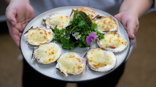 Dentro de su oferta, los platos de mar que destacaron fueron los ostiones a la parmesana, una propuesta creativa del chef, servidos con confitura de tomates dulces, y una nueva versión del cancato de