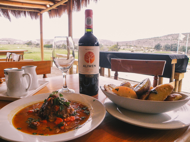 Nuestro almuerzo, se inició con un berrie sour, con pisco regional Mal Paso, que dio paso a unas quesadillas de ave con guacamole, más su infaltable pebrecito. Luego, Marcelo nos preparó dos de sus platos estrella: hamburguesa casera, de 200 gr, con sólo un 10% de grasa, acompañado de papas fritas, más carne mechada con papas a la provenzal. Un vino carmenere Aliwen, de Viña Undurraga, abrigó un poco el cuerpo, junto a una tibia fogatita dispuesta cerca de la mesa. Y en postre, un panna cotta, muy casera y sabrosa.