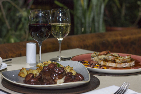 El Filete Giratorio justifica a cada bocado el porque es uno de los emblemáticos del restorán, la carne blanda, magra en un romance con el queso y el jamón que lo rellena y la salsa de vino con champiñones que humecta y cubre la carne con las papas perfectamente freídas simplemente hermoso, así tal cual comentamos la Albacora cardenal, una albacora en su punto con unos camarones sabrosísimos junto al quinoto de maricos que mas que un acompañamiento es otro universo mas.