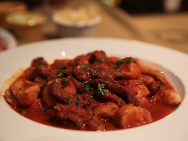 Como platos principales probamos dos de sus infalibles, el “Gnoqui Filetto e Vegetali” que llega a la mesa en una porción bastante generosa de esta tradicional masa italiana de papas con una salsa especial hecha a base de filete reposado en vino tinto y salsa de tomates con vegetales al dente. Totalmente recomendado para la cena o el almuerzo en estos días fríos de otoño. La pizza no puede faltar en una carta italiana, y así también recomendamos probar la clásica “Pizza Italiana” con masa a la piedra, mozzarella, buena cantidad de prosciutto y aceitunas. Perfecta.