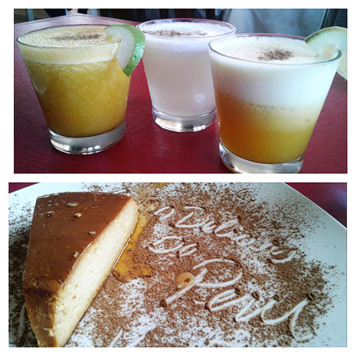 Finalmente, sellamos nuestro estomago con una Leche Volteada preparada con los secretos de la cocina criolla peruana. Destaco el original detalle del nombre del restaurant escrito en la canela en polvo.
