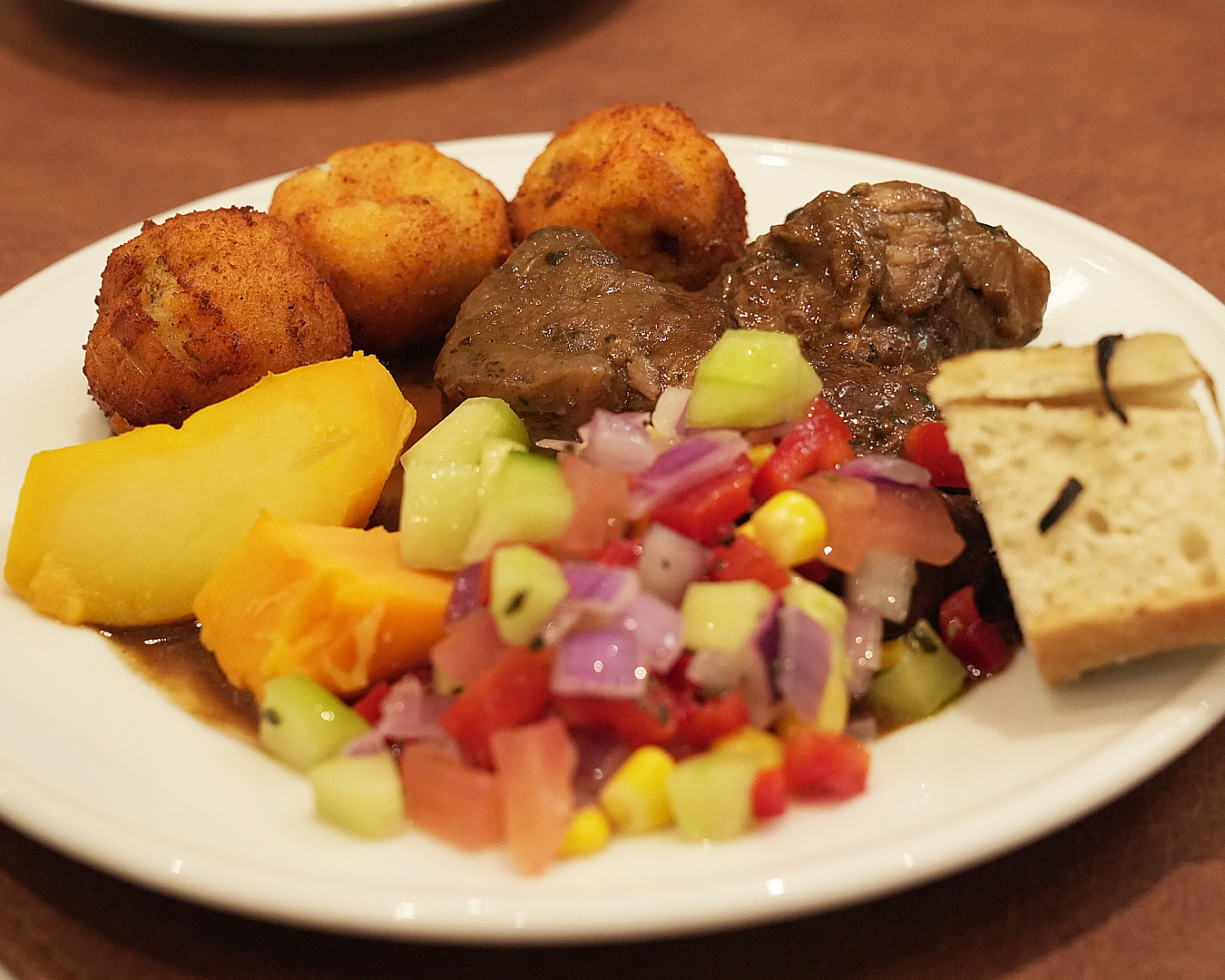 lomo salteado, ají de gallina, causas peruanas, entre muchas otras más. Pero obviamente el ceviche era infaltable e incluso tenían una amplia variedad con distintas salsas, donde destacamos la fusión nikkei.