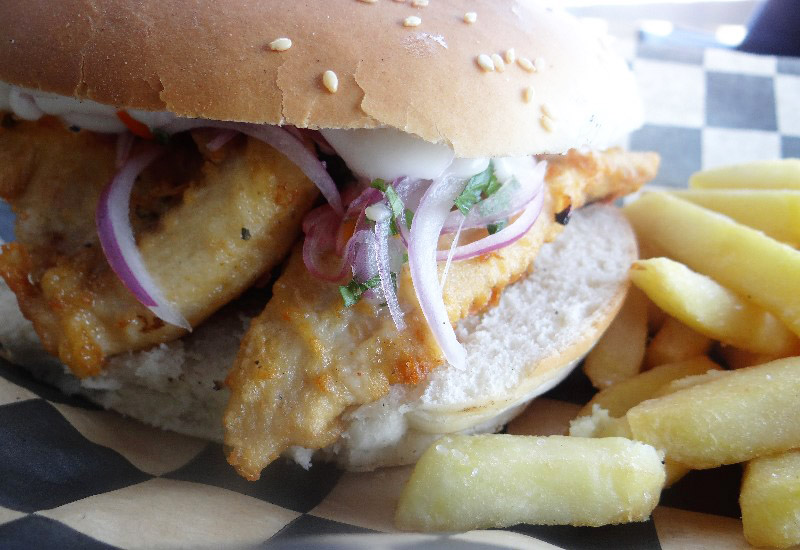 Como segunda intentona de domar la ola, no podía irme de este buque sin probar un clásico local y de la gastronomía nortina. El famoso Sándwich de pescado frito,para destacar su incorporación en la carta, ya que pocos locales de mantel un poco más largo o de cubiertos más brillante, se atreven. Buen batido de la bestia marina con toda su sedosidad y sabor.