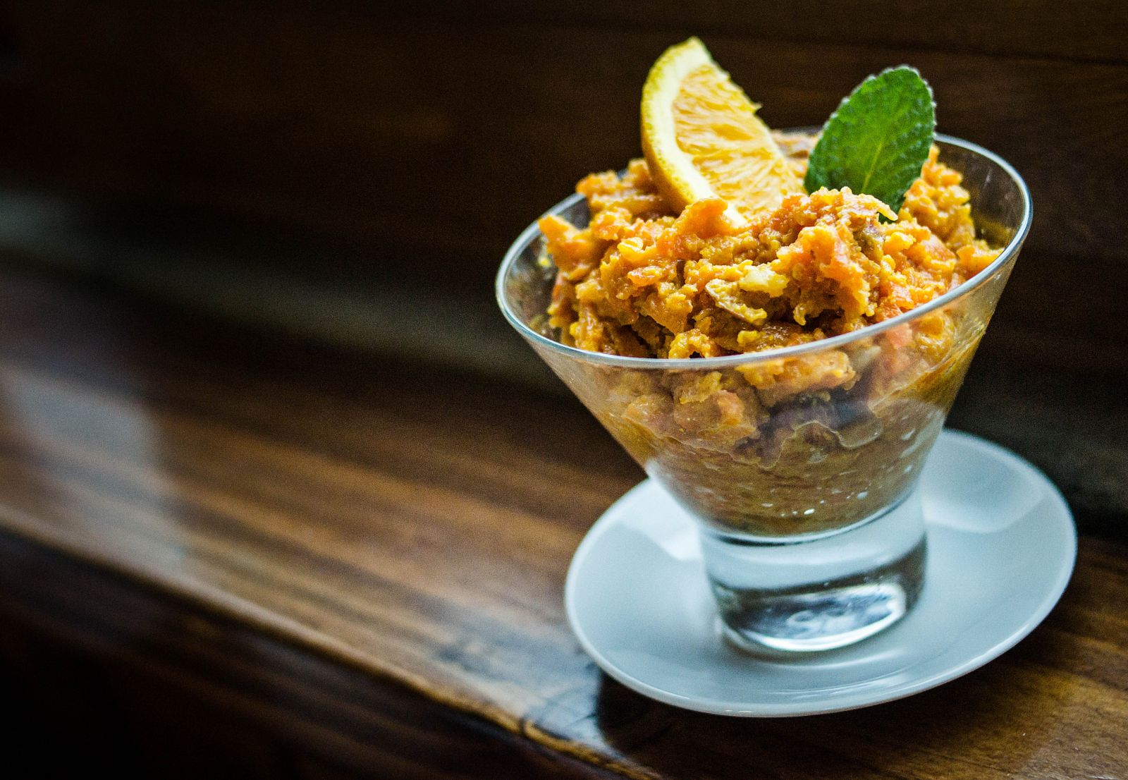 Para cerrar, no debe faltar el postre indio estrella de Inti Thakali: Carrot Halwa, un postre típico a base de zanahoria y frutos secos, realmente rico y con mucho dulzor.