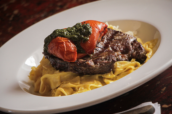 Sandra y Francisca me dicen que no puedo irme sin probar uno de los platos emblemáticos del restorán el “Lomo Lola”, un lomo grillado con fetuccini (pasta fresca) en salsa a la huancaína y queso de cabra, tomate asado con pesto de albahaca.