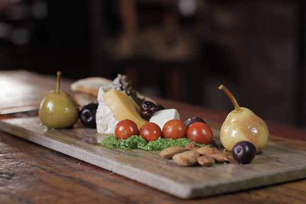 Ellas me sugieren el primer plato, la“Tabla Antipasto” que es un picadillo compuesto de quesos de cabra, brie, avellanas chinas, pequeñas peras de Toconao en almíbar con rica rica, aceitunas de Azapa, berenjenas y tomates cherry sobre pesto de albahaca, una mixtura de sabores.