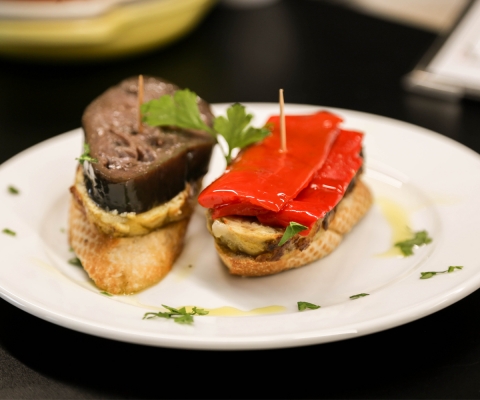 Con una carta bien pensada y con muy buenas opciones probamos varias preparaciones. Primero nos aventuramos con los Montaditos en pan Baguette con Tortilla de Papas y Berenjenas y otro con Tortilla y Pimientos al Vinagre. Simplemente increíble, la mezcla entre el denso aceite de oliva, el pan crujiente, lo suave de la tortilla y lo jugoso de la berenjena y pimentones hacen de estos montaditos un imperdible.