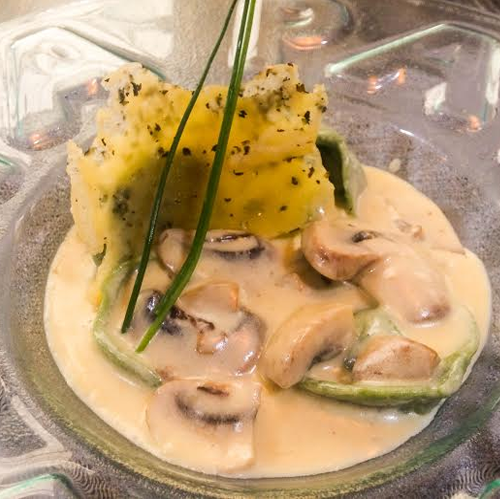 “Spinach Torteloni” es un plato aterciopelado, el cual consistía en tortelonis de espinaca rellenos de asado de tira y queso mozzarella mas salsa de champiñones París. La pasta al dente, los champiñones en su punto y el queso ayuda a que la carne no se sienta seca, más bien unifica los ingredientes.