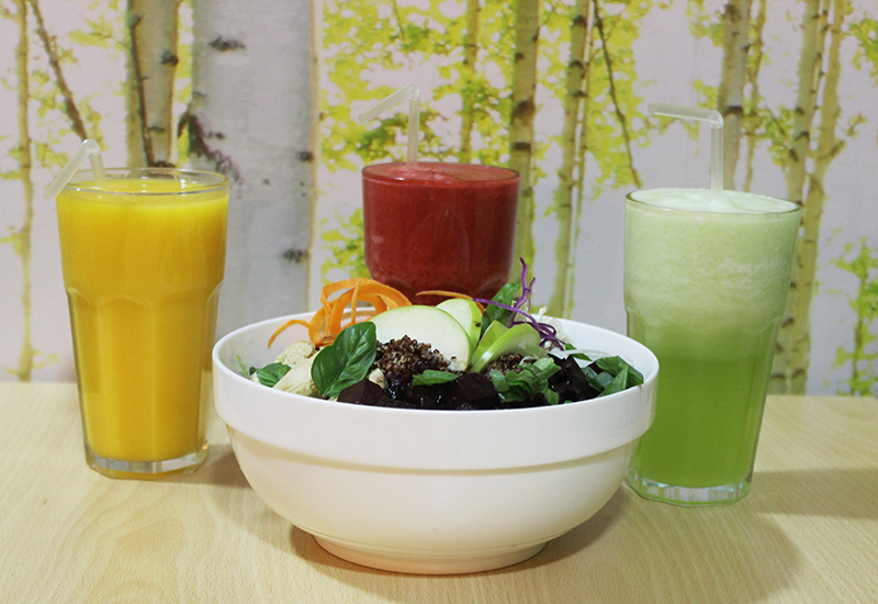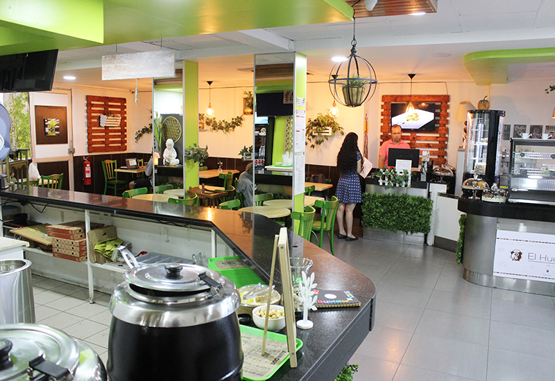 El Huerto de Jazmín abrió sus puertas hace unos meses. No es pretensioso en decoración pues se asemeja a cualquier lugar que ofrece comida rápida y almuerzos entre horas de trabajo y estudio. La diferencia radica en los detalles que invitan a probar una cocina consciente: un buda, una fuente con agua que corre, mensajes con frases motivacionales, mariposas y toques de verde que nos brindan esa sensación de calma en medio de un día ajetreado dentro de nuestra rutina.