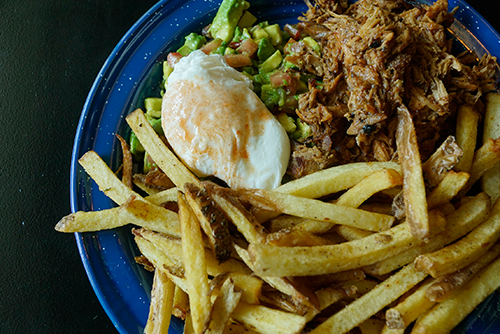 Luego, viste bien su carta, obra y diseño de su chef ejecutivo Christopher Ravanal Ventura, ofreciendo una cocina con “base gringa”, pero muy bien elaborada, en donde encuentras platos como los “Mac´n Cheese Grilldos (poderosas bolitas de papas doradas, rellenas de queso) Curry Beef (tocino crocante, entraña, etc.) Posee variedad de carnes en distintas preparaciones. También integra opciones frescas como su “Variedad de Tártaros” atún, salmón y de alcachofas. En nuestra visita quedamos loquitos de amor por su plato estrella “El Pullek Pork” (mechada de cerdo, que se derrite en tu boca, muy bien condimentada, acompañada de papas fritas al cajun, huacamole y huevo pochado) Este platito te deja literalmente en el cielo…
