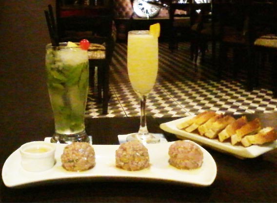 Krudo de Kubbe, en maceración de carne tártaro, limón y cebollín con Burgol (saludable variedad de trigo) y acompañado de un delicioso y refrescante mojito o pisco sour. Placentera y excelente alternativa que nuestro paladar agradeció.