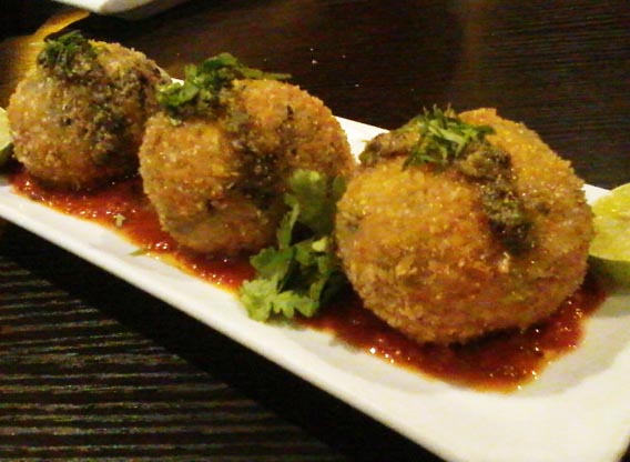 Luego, junto a mi acompañante, seguimos este maravilloso festín culinario con unos appetizers llamados Arancinis: una receta siciliana de rissotto negro de calamar, mozzarella, compota de tomate fresco, queso parmesano y albahaca. Una original y plácida elaboración.