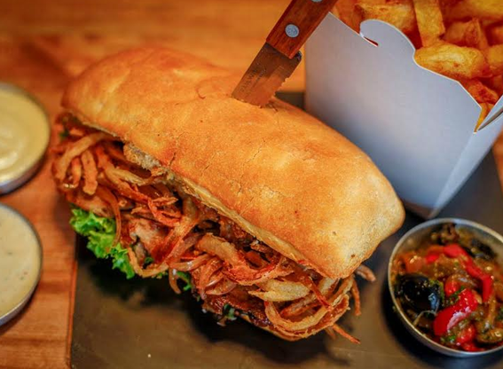De fondo, la decisión es difícil, ya que hay una carta compuesta de tentadores sándwiches de pollo y carne. Puedes escoger entre una “Mc Royal” de carne, cebolla caramelizada, queso fundido y salsa de champiñones o un sándwich de “Pollo al pil pil” acompañado de papas chip y plátano frito.