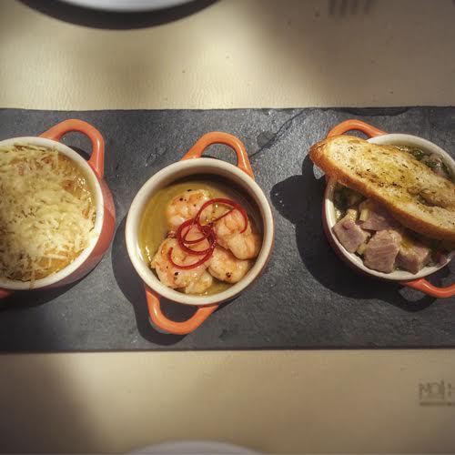 La carta, pronta a renovarse y con una generosa apuesta con más de 140 productos nos habla de nuestra diversidad de materias primas, climas y sabores. Christian nos ayudó para no perdernos en este camino, guiándonos para partir con “La Terna del Mar”, una fresca entrada que equilibraba muy bien los sabores cítricos y cálidos de nuestra costa. Camarones al pil pil, ceviche de atún y pastel de jaiba integraban este plato para compartir.