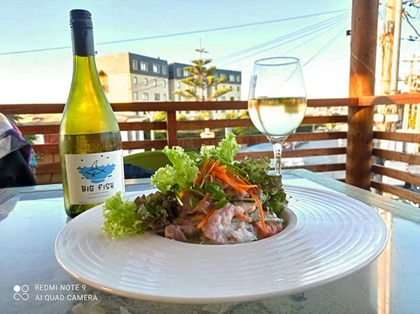 ceviche de bielagay de los pescadores de Algarrobo. En nuestra visita nos deleitamos con una entrada de machas a la parmesana, de fondo ceviche de atún de Rapa Nui, llamado Tío Kio y para terminar coronamos con el famoso caldillo de congrio, plato icono de este