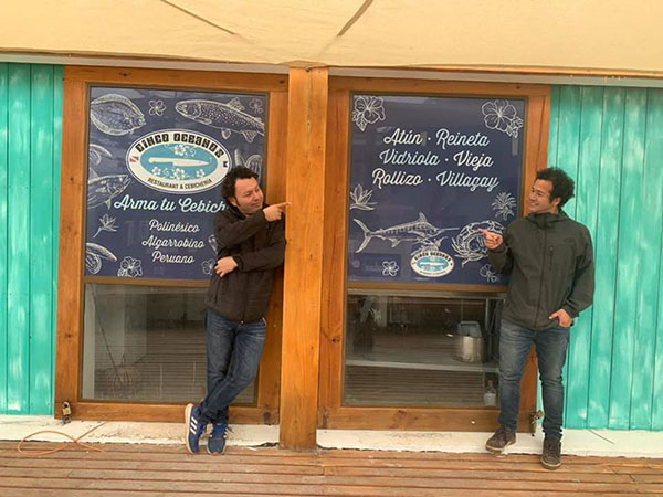 Hace aprox. 4 años nace uno de los restaurantes más concurridos de la playa de Algarrobo, Cinco Océanos. Este restaurant surge como un servicio de la escuela de buceo que ya tiene más de 20 años de vida y es muy conocida dentro del litoral. Ofrece una carta marítima, que le hace honor a la ubicación del local, frente al mar. El negocio esta comandado por dos socios, el principal es Joao Rodriguez, buzo profesional y uno de los mejores instructores del lugar, tiene como mérito, ser el buzo más joven en misión de la antártica.