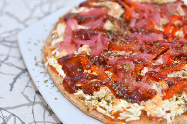 Mientras tanto salió del horno una pizza BBQ integral de una masa equilibrada y crujiente con sus ingredientes justos que aportaron buen sabor y respetando la línea del local compuesta de queso de cabra, salteado de ave, pimento y cebolla morada con una base de salsa barbecue.