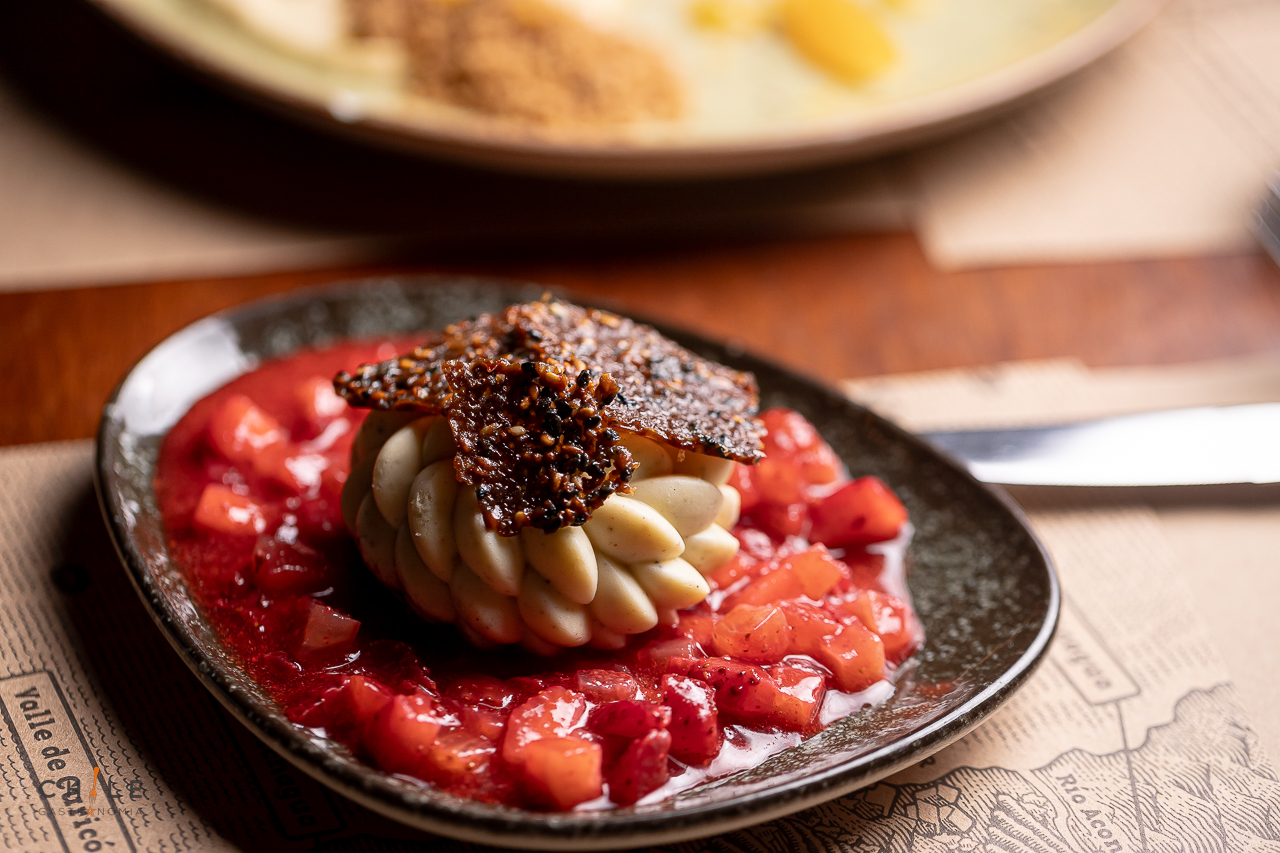 La propuesta gastronómica está liderada por el chef ejecutivo Germán Fuentes, quien impulsa una cocina de autor con identidad nacional, basada en productos estacionales y técnicas contemporáneas que dialogan armoniosamente con la amplia selección de vinos. Bajo su mirada, cada plato nace para potenciar la copa, y cada copa se selecciona para realzar la creación culinaria.